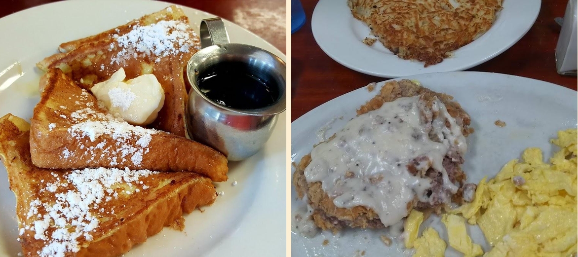 Popular menu items include the Country Fried Steak and loaded tots. The breakfasts are also a crowd favorite. Don't forget to try their homemade desserts.